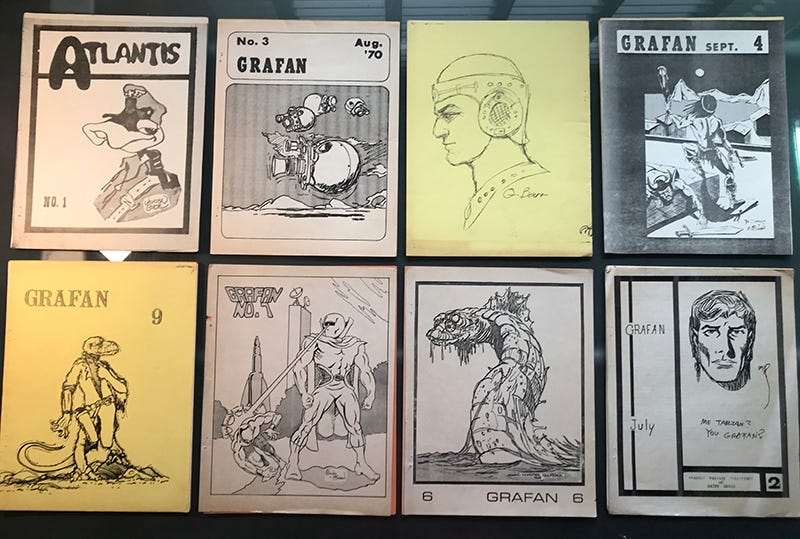 It was in SON OF GRAFAN 13 (1972) Walt first published part of the story “The Sacred Crest,” by his friend and fellow Grafan member Jim Theis. The tale, a sequel to Jim’s story “Eye of Argon” (published years earlier in another STL zine, OSFAN,) finally saw print in its complete form in 2024 when Walt produced the book The Sacred Crest: A Grignr the Barbarian Story.