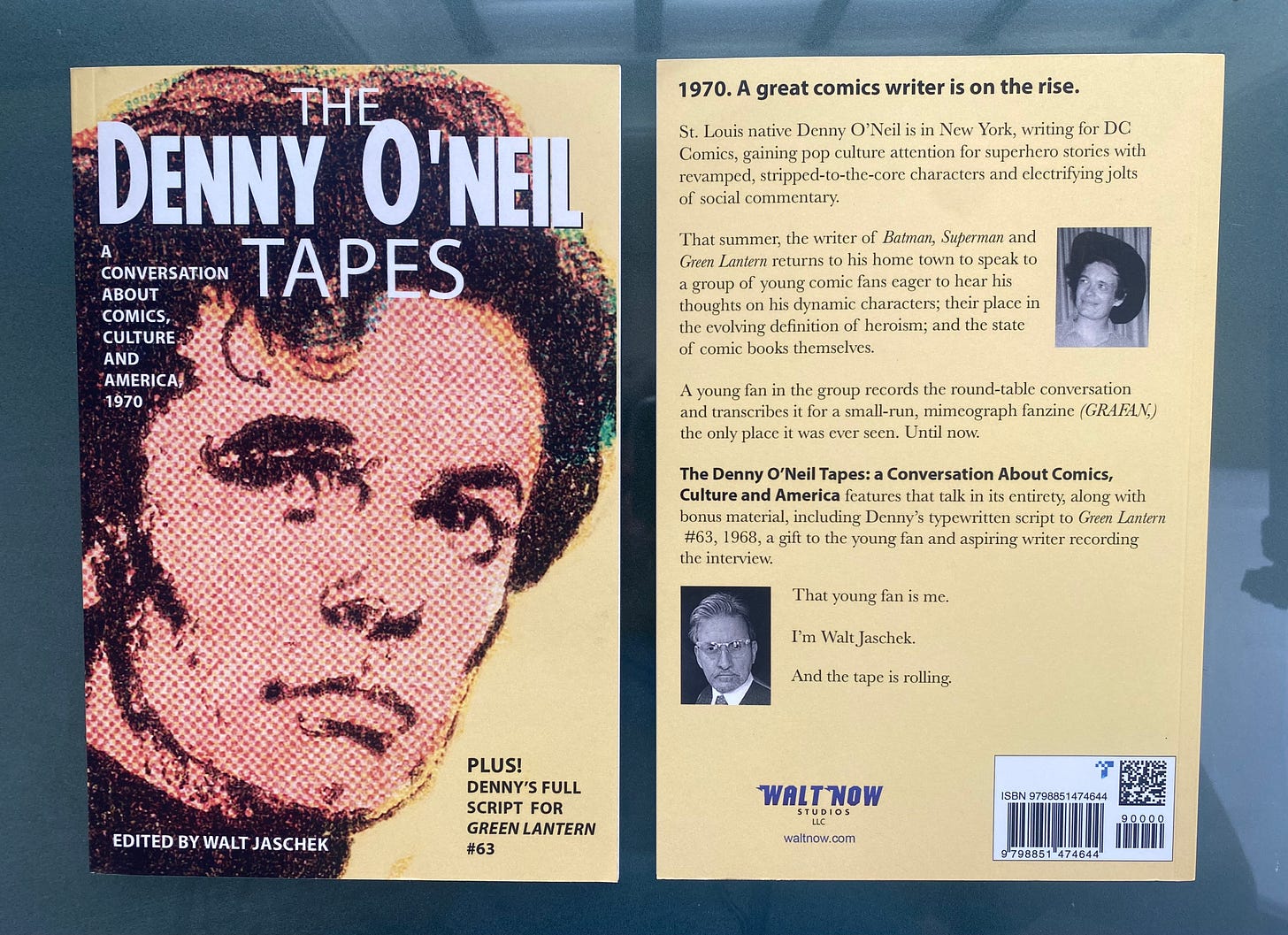 Walt is the author and publisher of THE DENNY O’NEIL TAPES, A CONVERSATION ABOUT COMICS, CULTURE AND AMERICA (2023.) The book features a long interview conducted in 1970 with the influential comics writer from St. Louis by a group of fans – including Walt, who recorded the conversation and first transcribed it when he was 15 years old. The far-ranging interview included big news about the return of the Joker. The book also includes biographical material, and scans of a Denny O’Neil original script for GREEN LANTERN, gifted by Denny to Walt in that 1970 meeting.